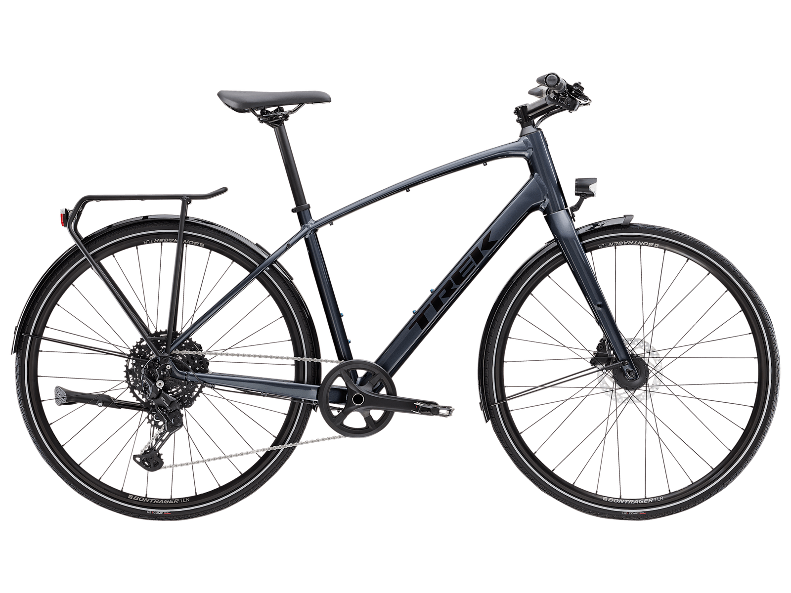 Trek FX 3 Equipped to wszechstronny rower hybrydowy, który łączy wygodę codziennego użytkowania z wydajnością treningową. Dzięki lekkiej aluminiowej ramie, pochłaniającemu drgania widelcowi z włókna węglowego i prostemu napędowi 1x, oferuje szybką, pewną i bezproblemową jazdę. Co więcej – przychodzi wyposażony w komplet praktycznych dodatków: światła zasilane z prądnicy, błotniki, bagażnik i nóżkę. To idealny wybór dla każdego, kto chce jeździć często i komfortowo, niezależnie od pogody.